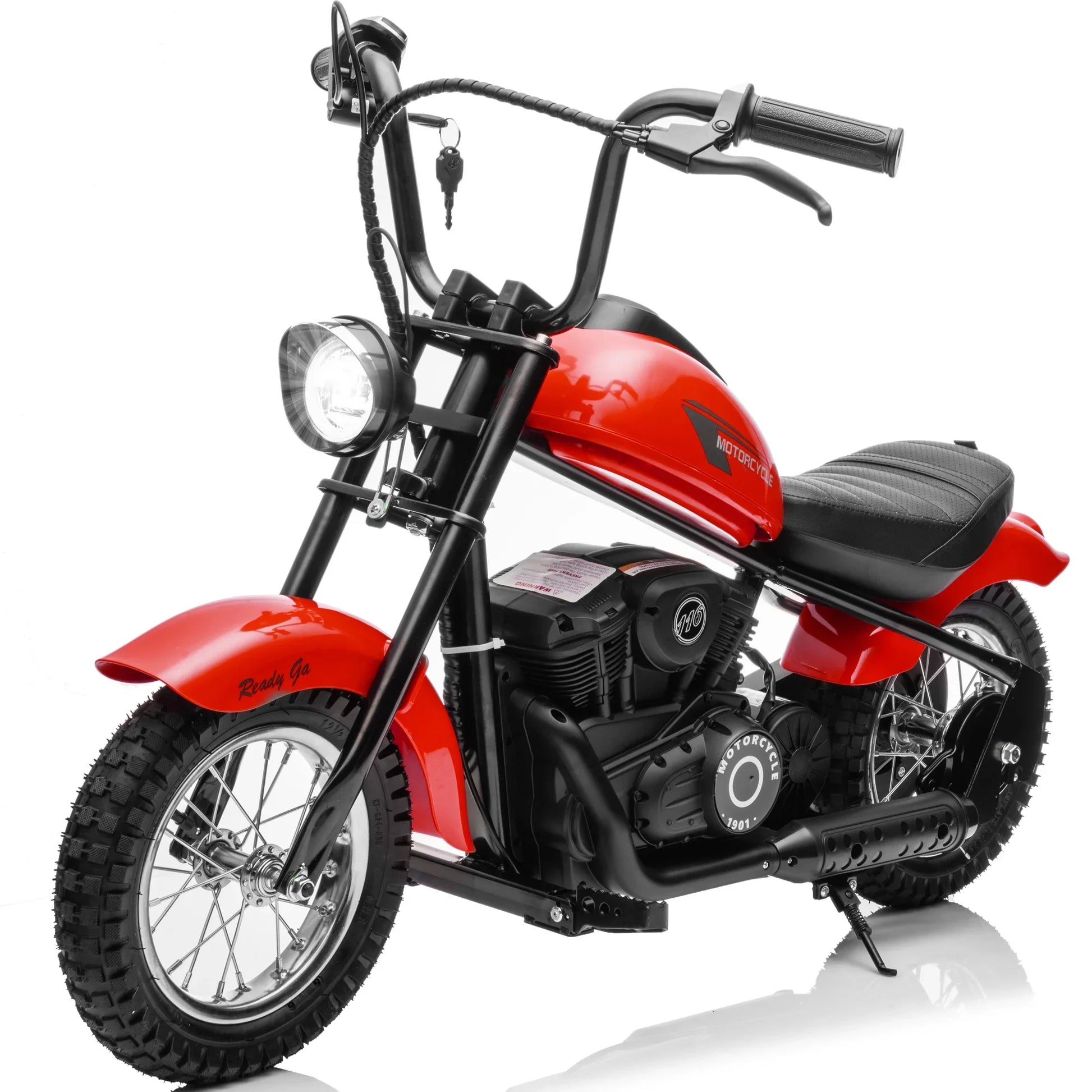 Introducing iYofe's latest 24V 9AH dirt bike for kids! With a powerful 250W motor, this motorcycle reaches speeds of up to 13.6 MPH and weight capacity up to 132 lbs. Its realistic Harley-style design, key-start ignition, throttle twist, and bright headlights offer children an authentic and exhilarating riding experience.The advanced braking system features both power-off and mechanical brakes, providing dual-layer protection for enhanced safety. Equipped with 12-inch premium pneumatic tires and a metal spring suspension system, it delivers excellent shock absorption for a smooth and comfortable ride. The comfortable anti-slip grips, soft PU leather seat, and retractable footrests make this Harley motorcycle the perfect gift for kids. With three years of experience in children's vehicles, iYofe ensures every product is CPC quality and safety certified. For any questions about this 24V kids dirt bike, whether pre-sale or post-sale, please contact us. Our professional customer service team is ready to assist you within 24 hours.