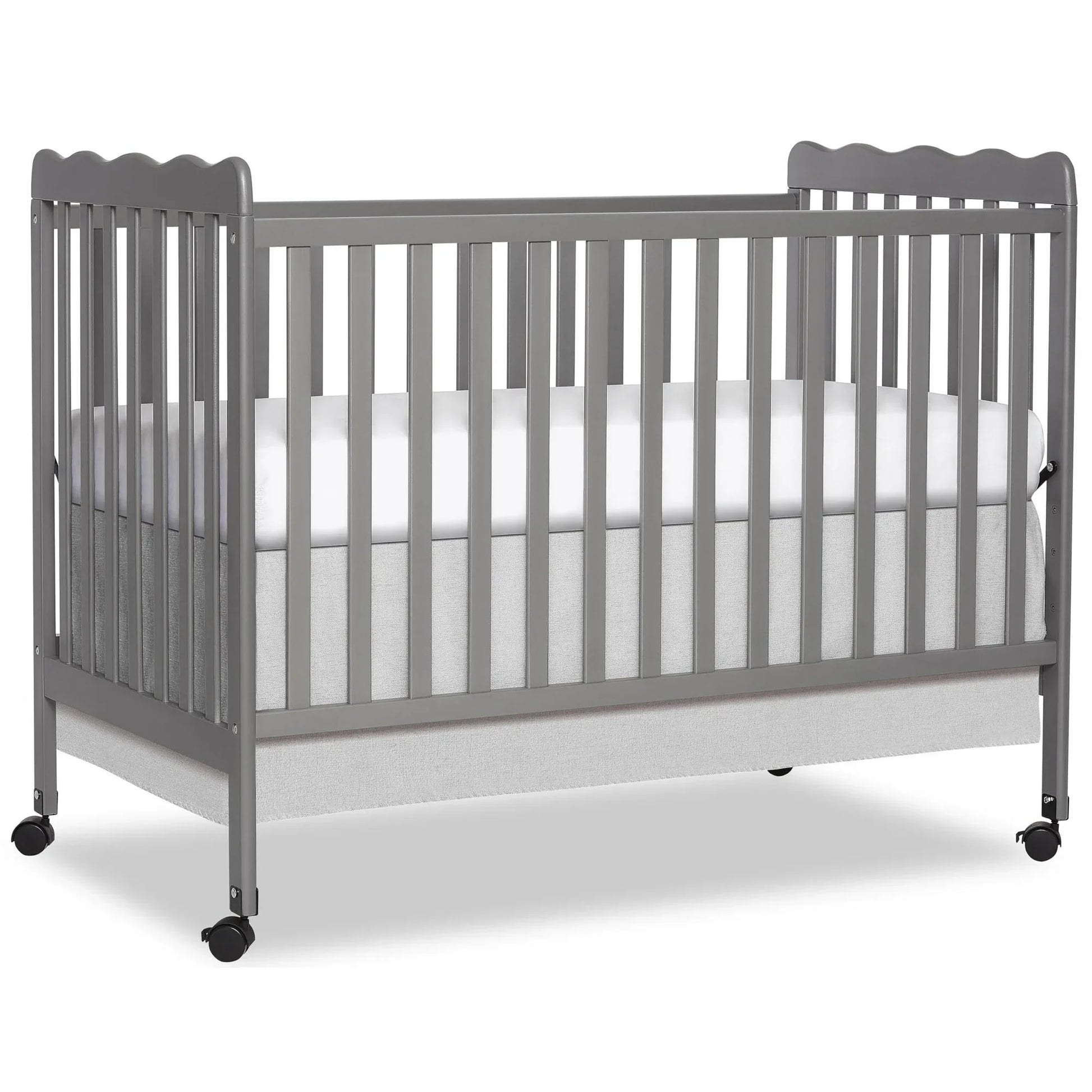 Baby Convertible Crib 3 In 1, Converts from Baby Crib to Toddler Bed, New Zealand Pinewood Baby Bed with Locking Wheels and Teething Rail, Crib with 4 Height and Non Toxic Finish, Stone Gray