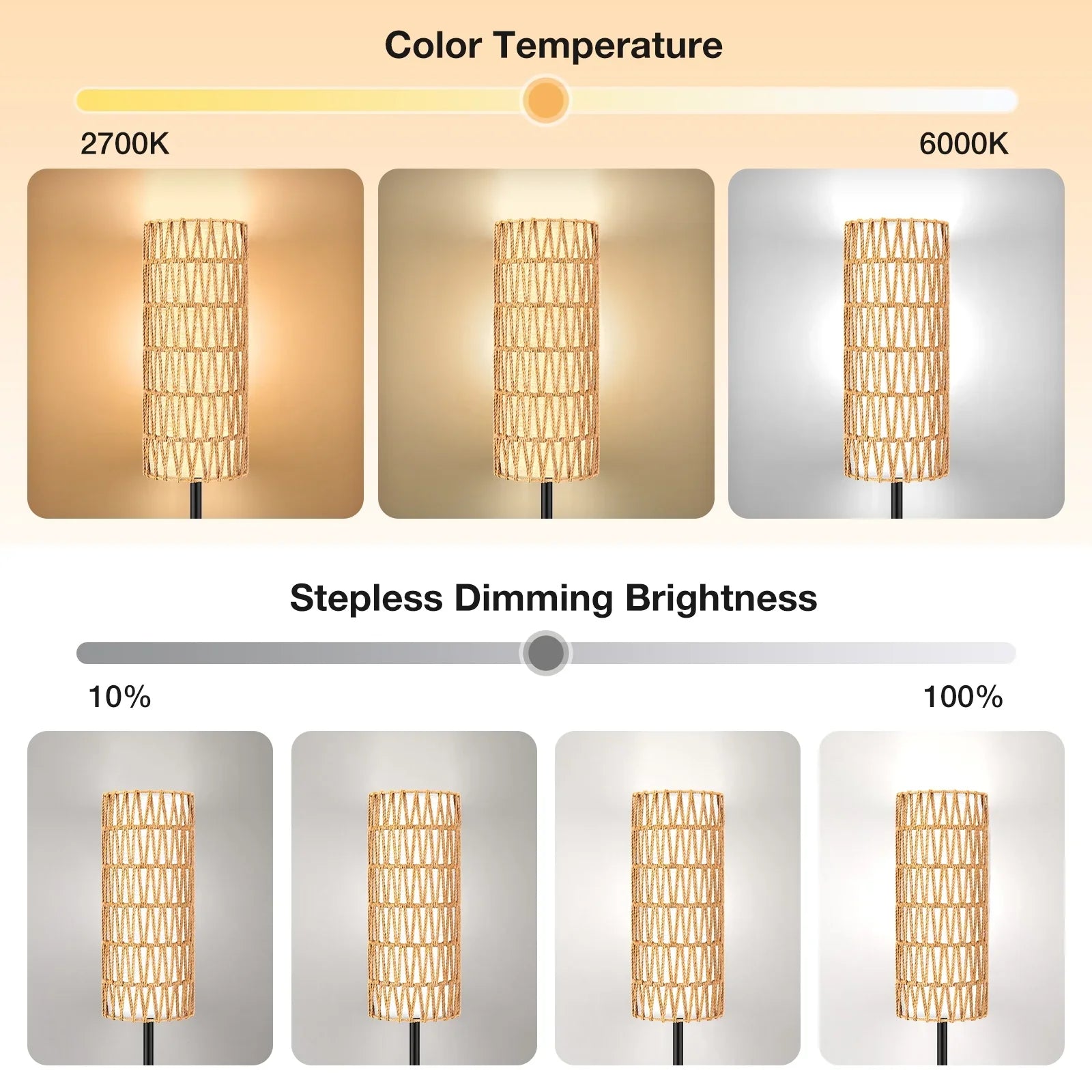 This boho floor lamp comes with a hand-worked woven rattan and linen drum lampshade, has 3 display effects. The removable lampshade can be combined according to your preference. Innovative design offers home decor options.【Sturdy Metal Material & Heavy Base】