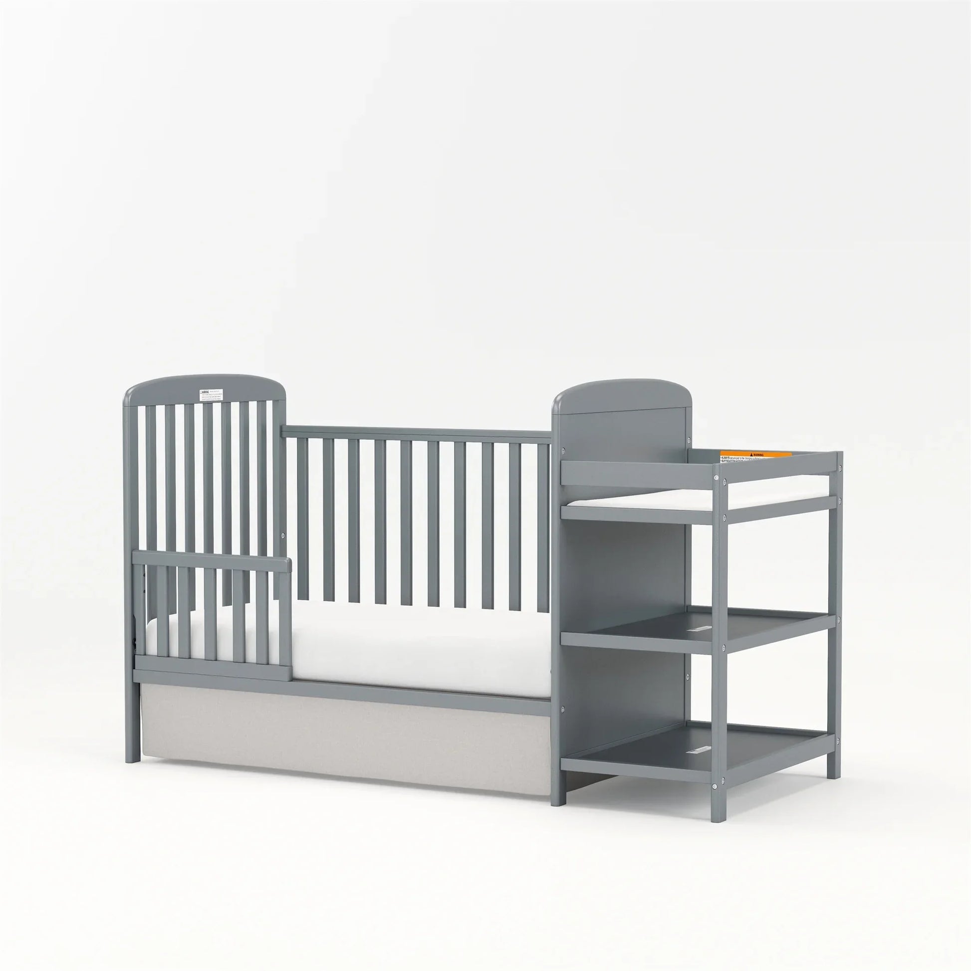 CASEMIOL 3-In-1 Convertible Crib and Detachable Changer, New Zealand Pinewood Baby Crib, Toddler Daybed Bed with 3 Heights, Non-Toxic Finish, Easy to Assemble, Stone Gray