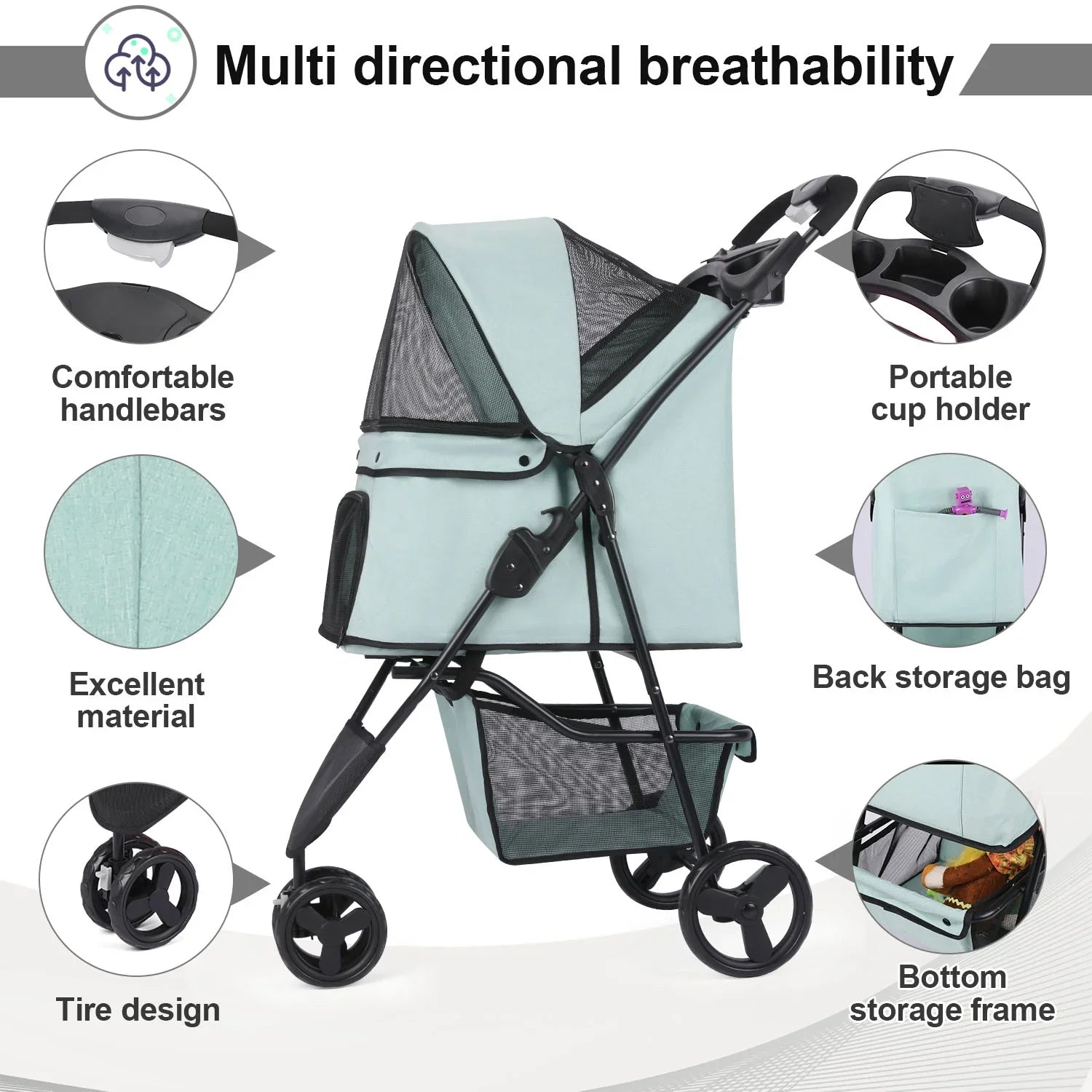 Dog Stroller, Wedyvko 3 Wheels Foldable Pet Strollers with Storage Basket and Cup Holder for Small and Medium Cats, Dogs, Puppies (Blue-green)