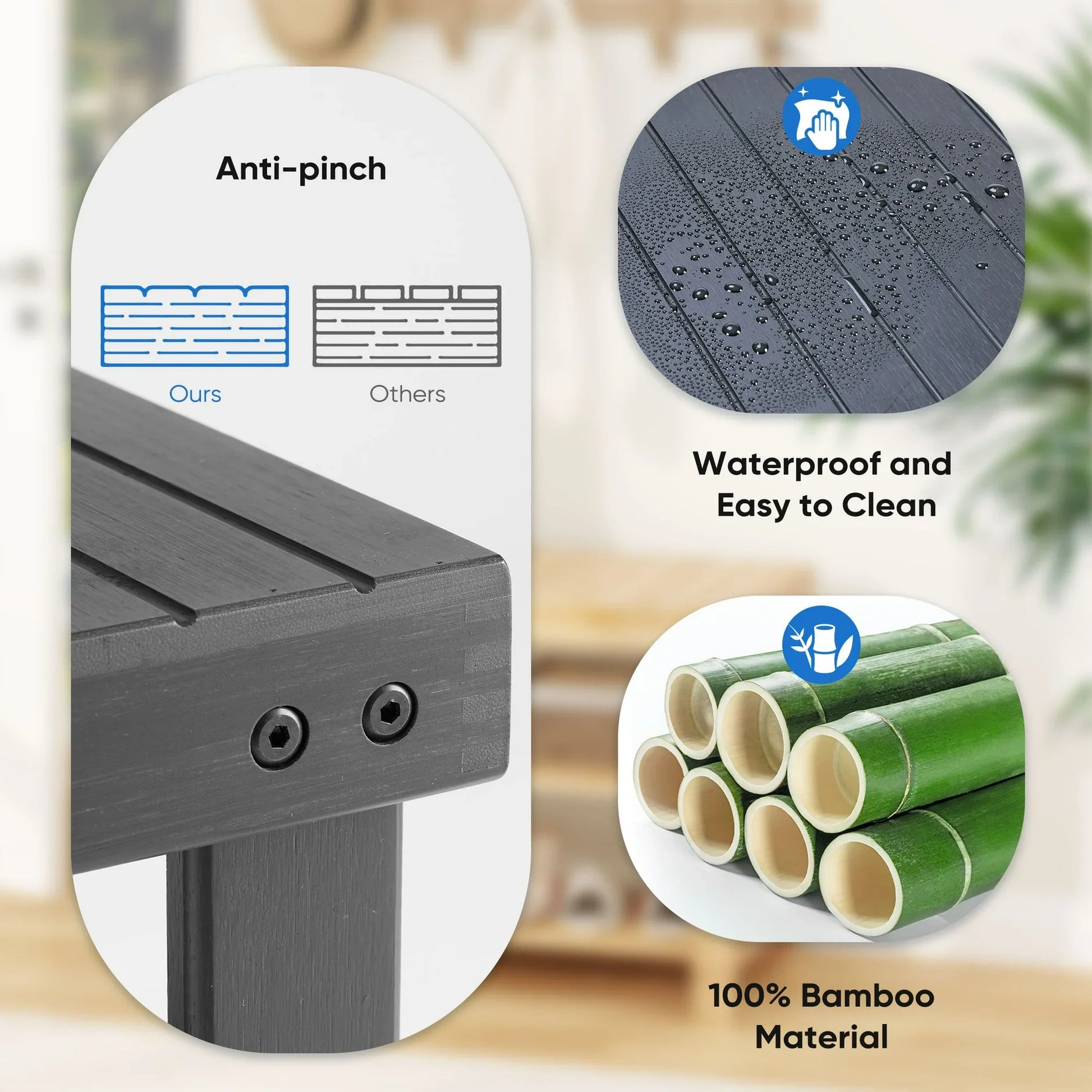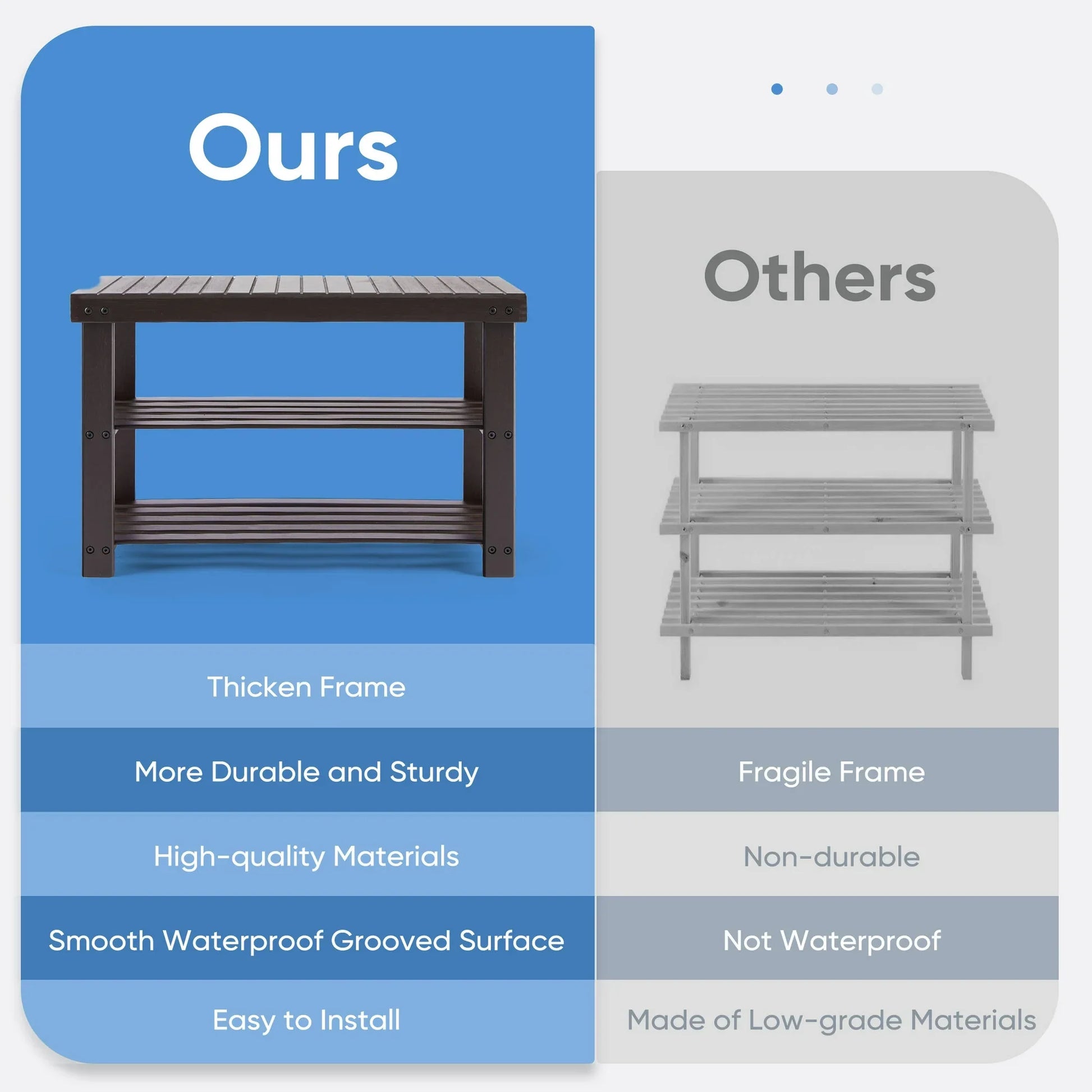 - Premium Materials: Crafted from natural bamboo, this shoe rack boasts durability and resistance to corrosion. Our unique process makes the bench waterproof and easy to clean with just a simple wipe. Experience long- lasting quality with eco- friendly materials.