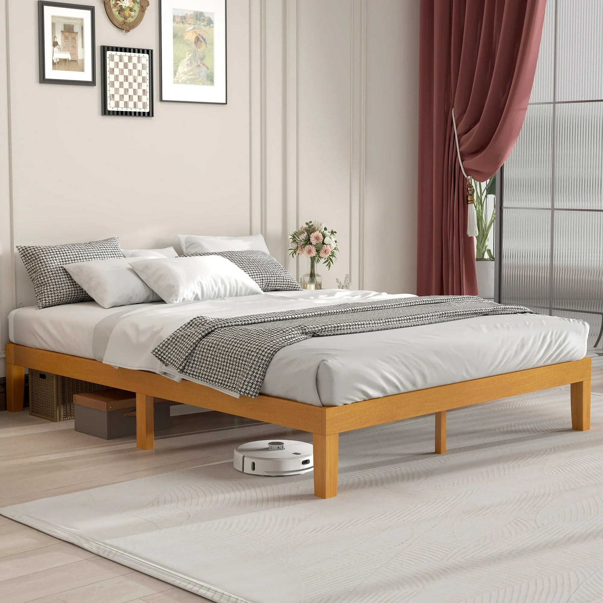 EDX Full Size Wood Bed Frame, No Spring Needed, 12in Wooden Platform Bed Frame Mattress Foundation with Support Slats, Natural Pine