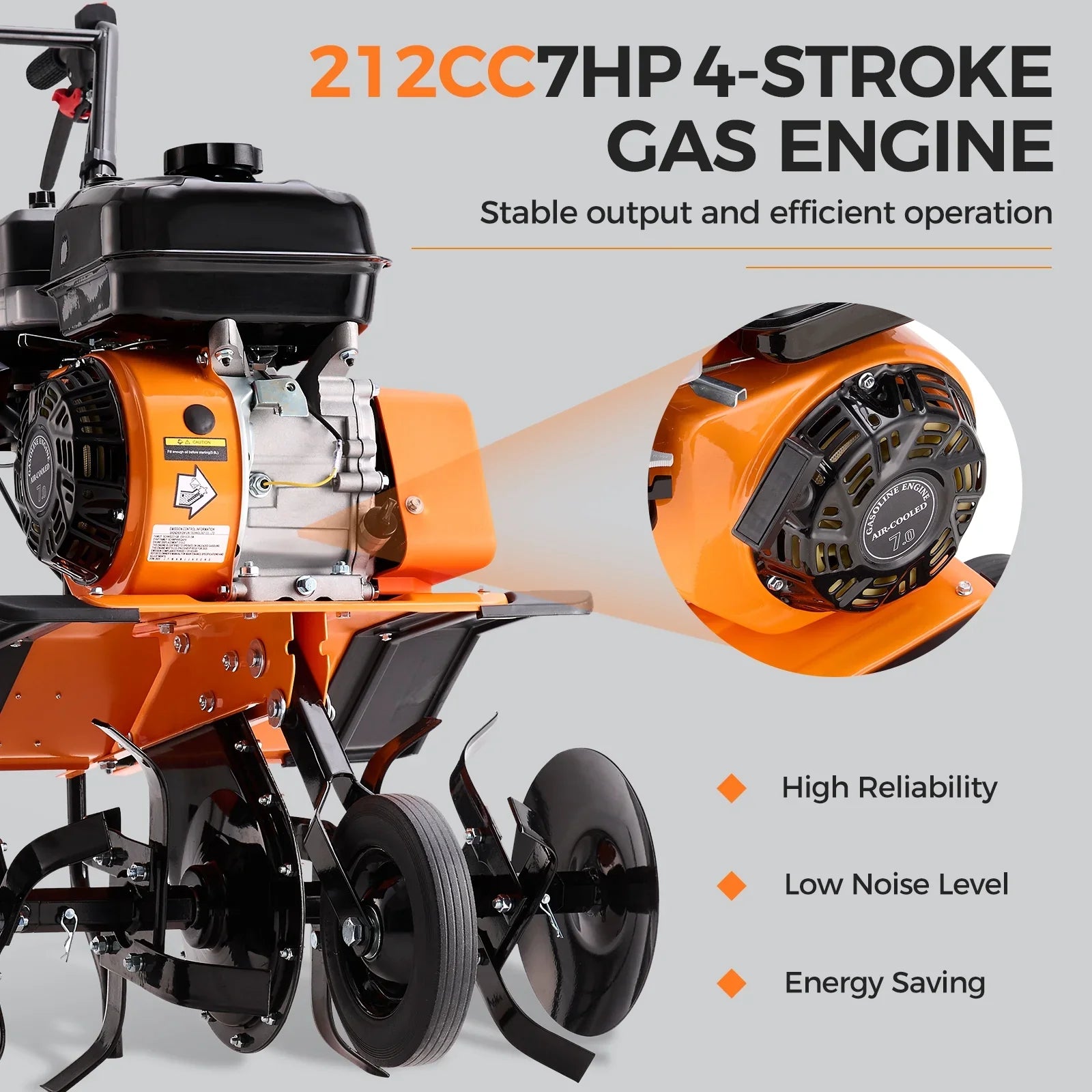 Efurden Gas Tiller Cultivator, 7HP 212cc Gas Powered Engine Tiller Cultivator for Garden Lawn Soil Cultivation, Weeding Digging