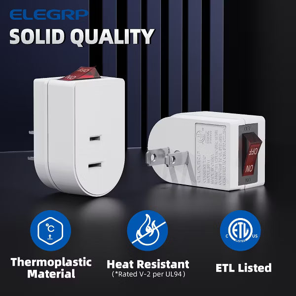 ELEGRP 15 Amp 125-Volt 3 Prong Grounded Single Outlet Adapter Plug with Red Indicator On/Off Switch, White( 4-Pack)