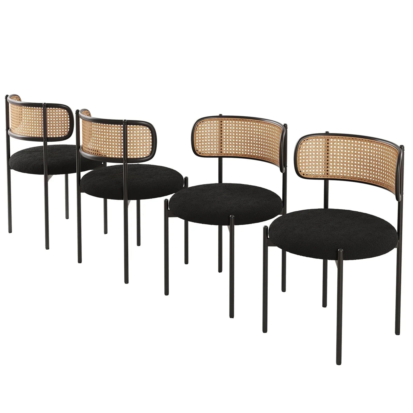 Farini Upholstered Dining Chair Set of 4, Rattan Backrest Kitchen Chair, Black