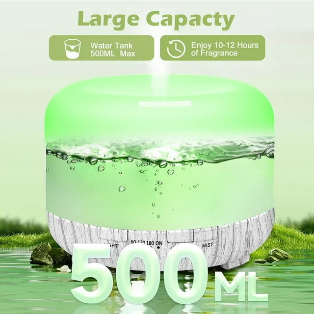 💗【5-IN-1 AROMATHERAPY DEVICE】:This ultrasonic essential oil diffuser is an amazing multi-functional aromatherapy device unlike any other you've ever used. It features a large and easy to clean 500ml water tank, 7 LED light colors, multiple mist nebulizer modes and remote control, as well as a safety auto-switch that prevents it from overheating in case it runs out of water.