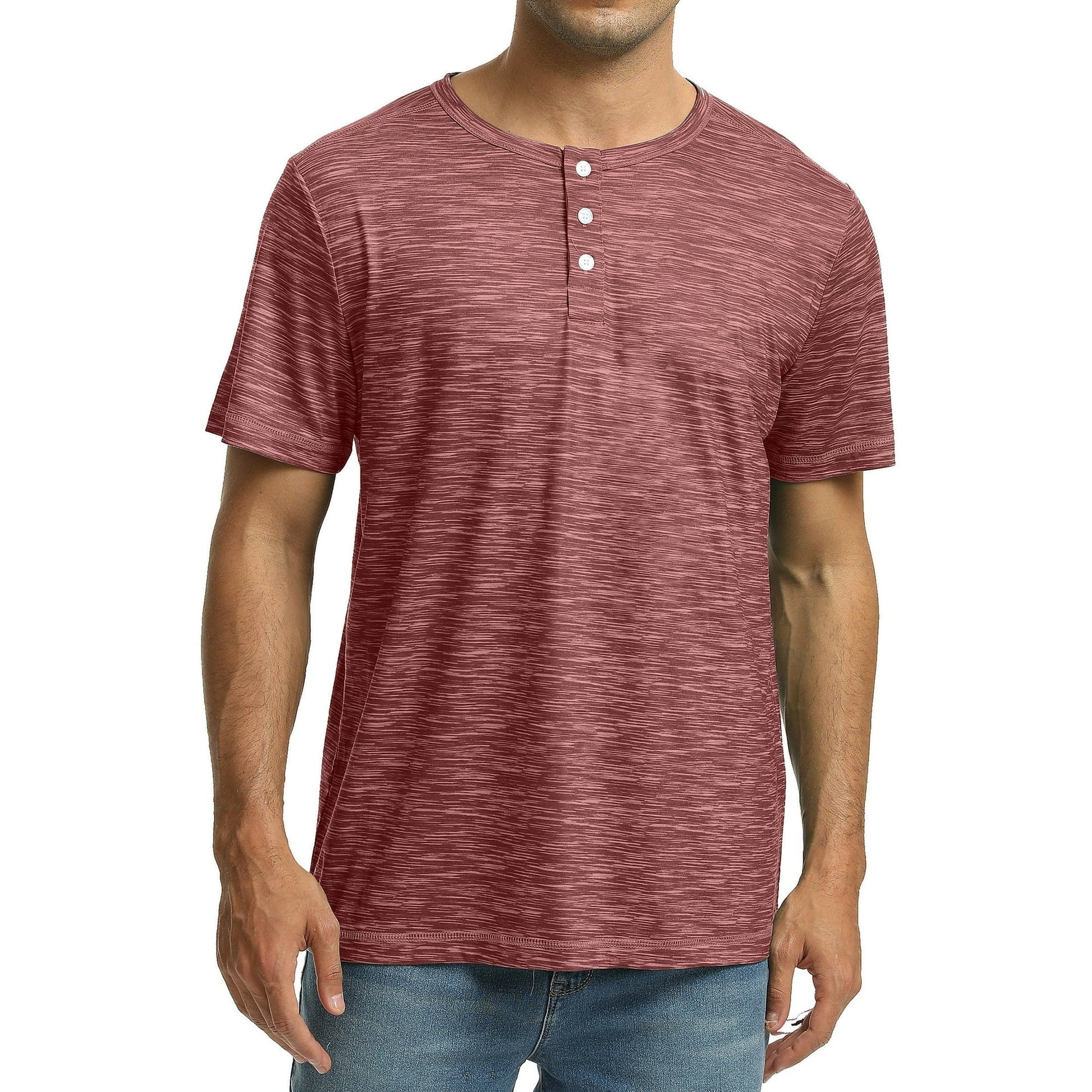 🍁【Design】: Upgrade your casual wardrobe with our short sleeve henley men shirts, designed with a fashionable printed-face that sets these men t-shirts apart. The unique design adds a modern flair to your everyday outfits, making these shirts for men a must-have for any style-conscious individual. Featuring a classic henley-style snap placket and distinct raw edge seam detailing at the shoulders, these shirts exemplify superior craftsmanship. The meticulous attention to detail in our henley men shirts guarantees that you'll stand out in any casual setting while enjoying a polished look.