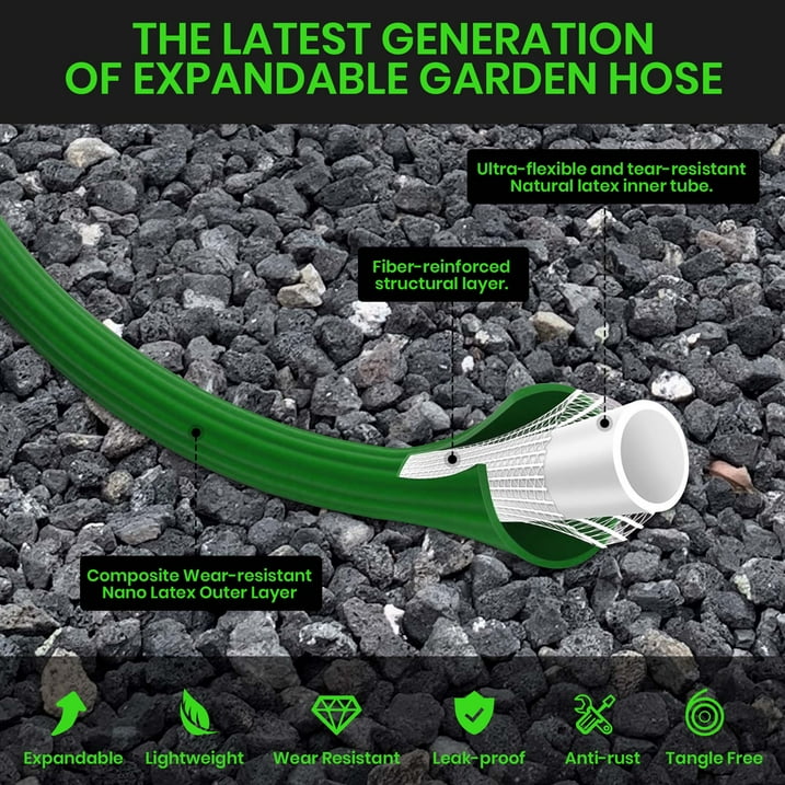 - 🚿2.5X Expandable & Retractable: Quickly extends up to 100 ft with water pressure and easily shrinks for compact storage.