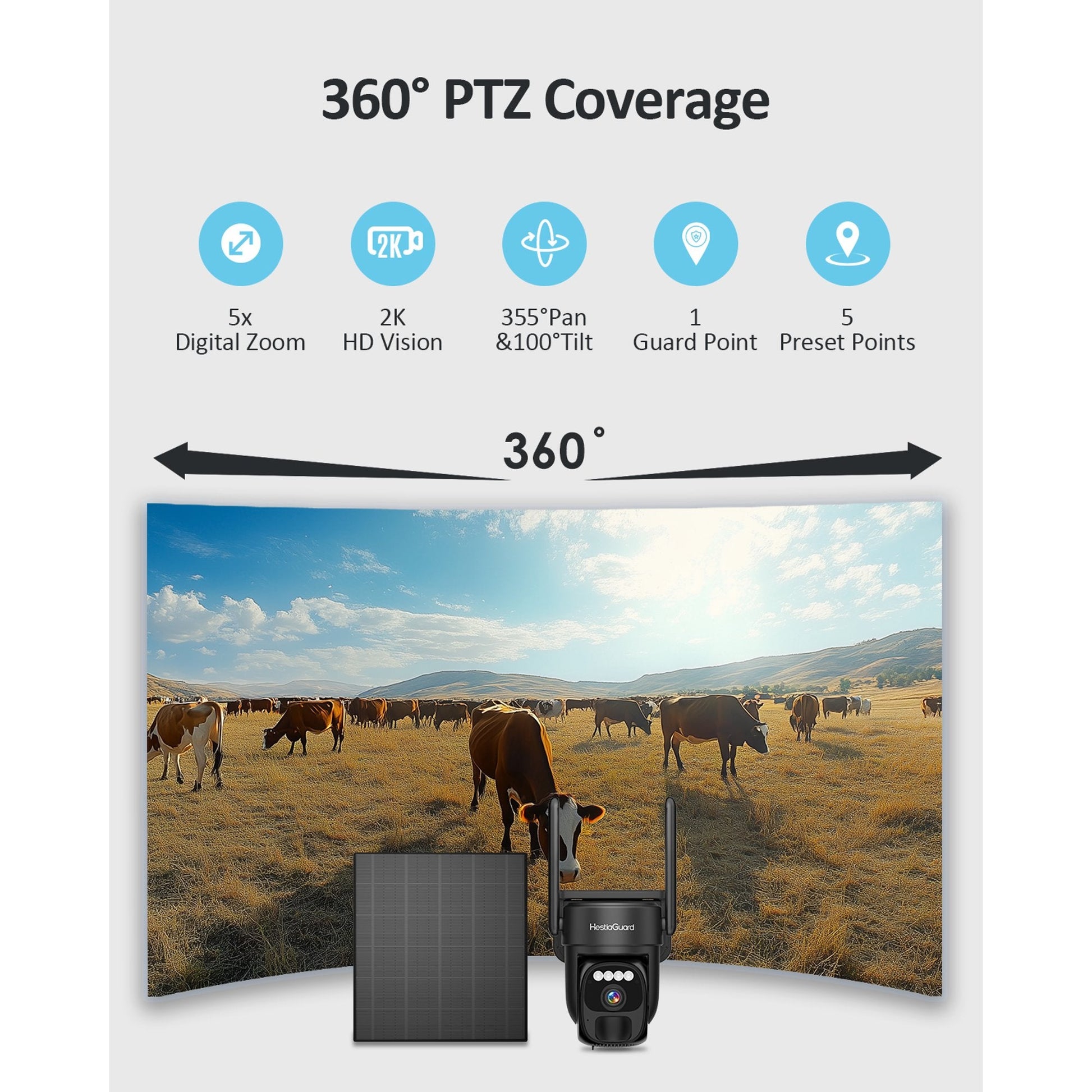 HestiaGuard 4G LTE Cellular Security Camera Solar Powered with Built-in SIM Card, Remote Access, Motion Alerts, Auto Human Tracking, 2K HD Color Night Vision, Non-WiFi Design