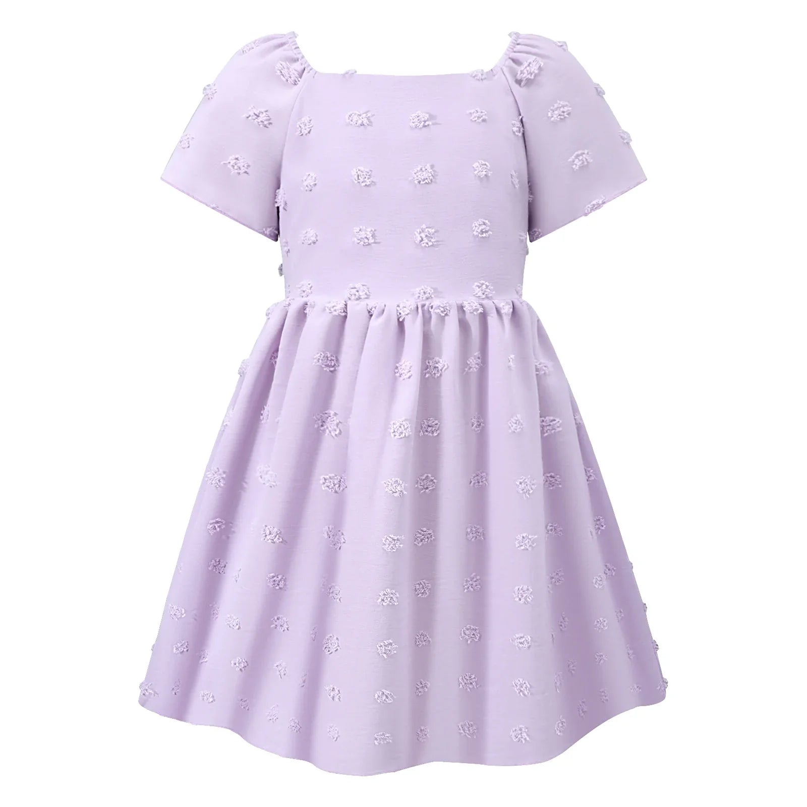 HILEELANG Little Girl Easter Dress Short Sleeve Summer Lavender Casual Tie Back Princess Elegant Party Dress 4-5T