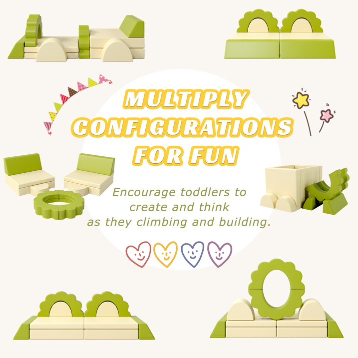 Various Combinations: Can transform into a sofa, sofa bed, elephant, train, or ball pit.