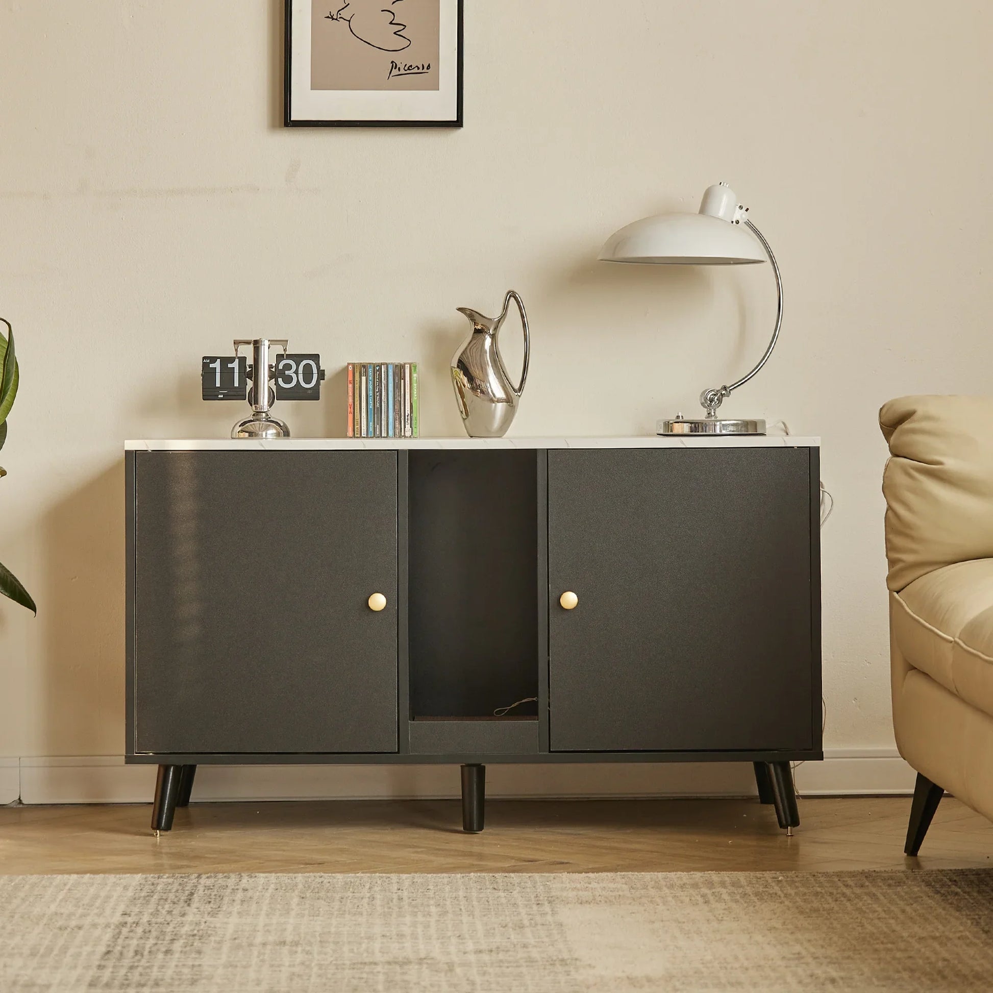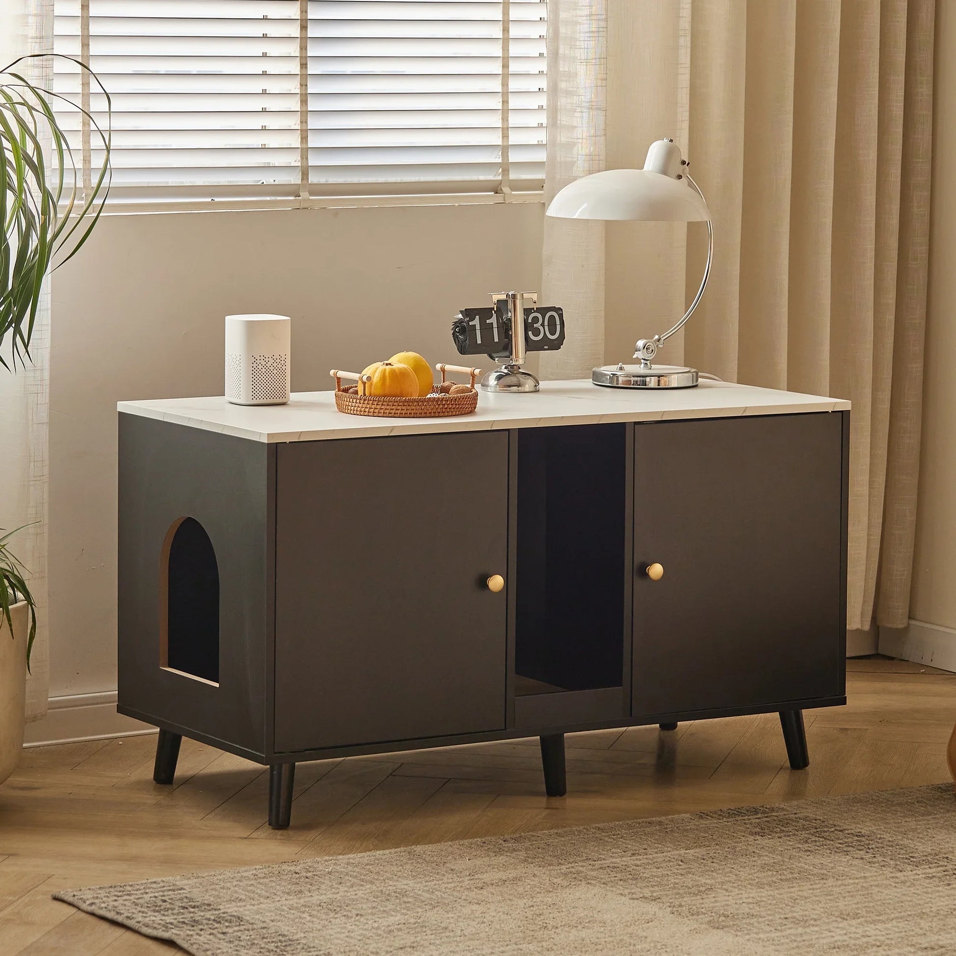 【3-in-1 Cabinet】 - It can be used as a cat litter box enclosure for 2cats, or as a TV stand for a 50-inch television, also as a coffee table when it removes the wooden legs.