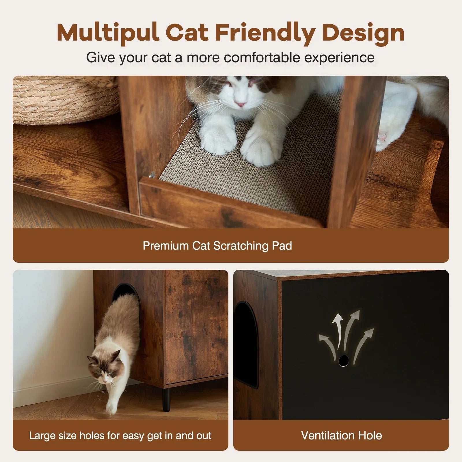- 【Double Room Design】 - The double cat litter box size is 24*45.2*19.68 inches, which can accommodate 2 15*18 inches litter boxes or 2 cat beds. This double cat furniture allows cats to use the bathroom inside the house and control odors.