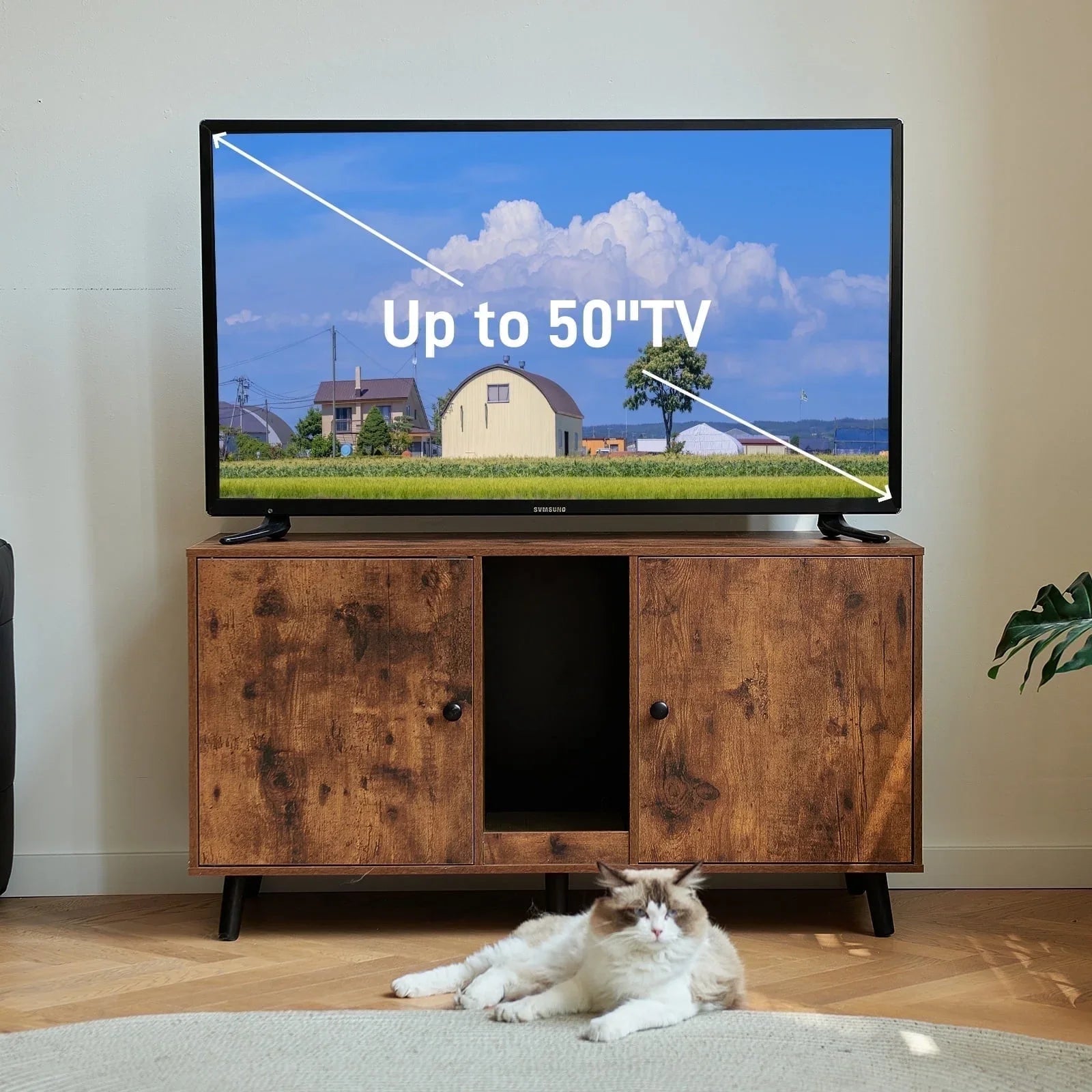 - 【Multifunctional Furniture】- This product can not only be used as a litter box enclosure for 2 cats, but also can be used as a TV stand for up to 50 inches TV, which saves you more space.