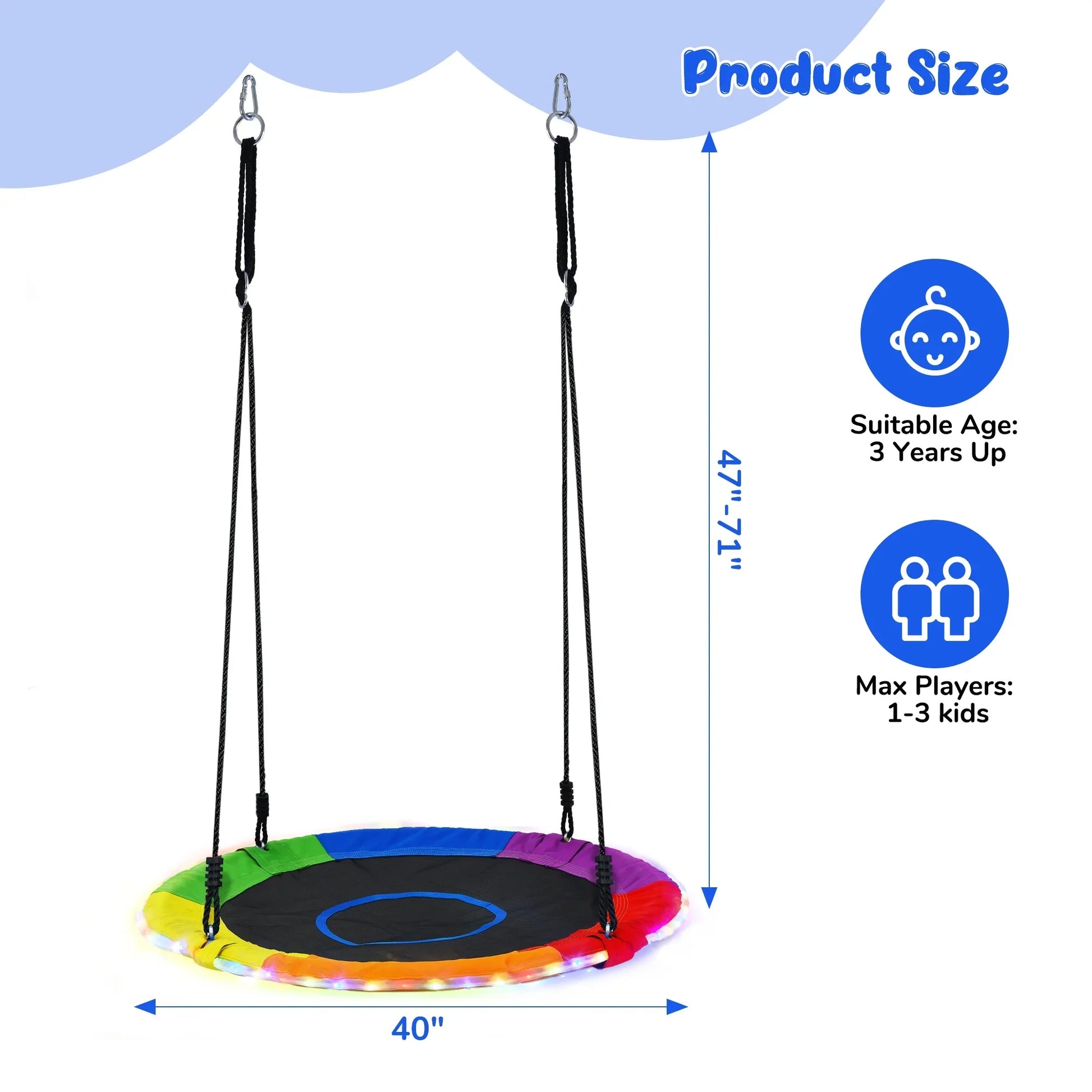 KloKick 700lbs 40 Saucer Tree Swing for Kids Adults Durable Outdoor Swing with LED Lights, 2 Tree Hanging Straps. Rainbow