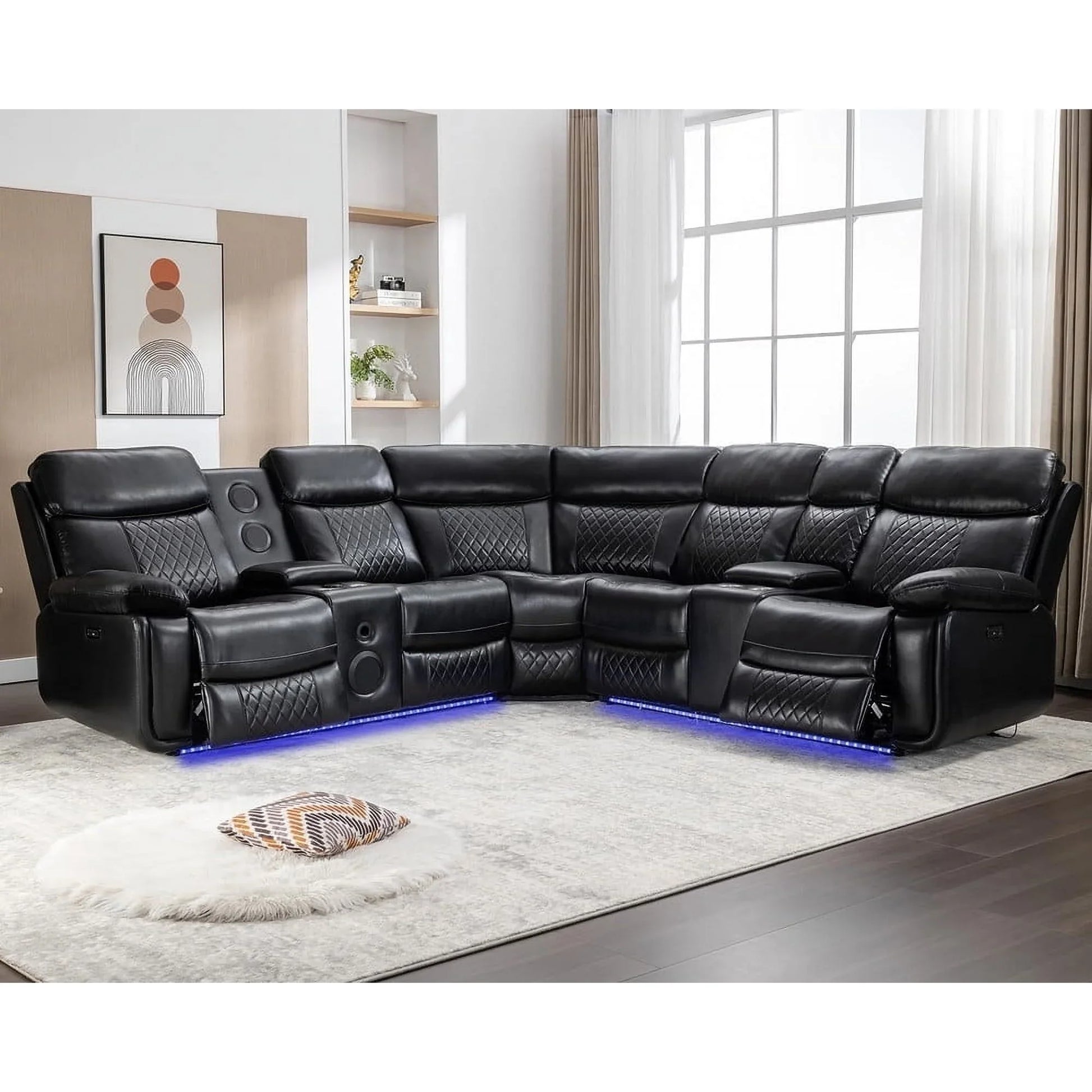Othniel Power Reclining Sectional Couch with Bass Speaker Ambient Light USB Port,Cup Holder Black