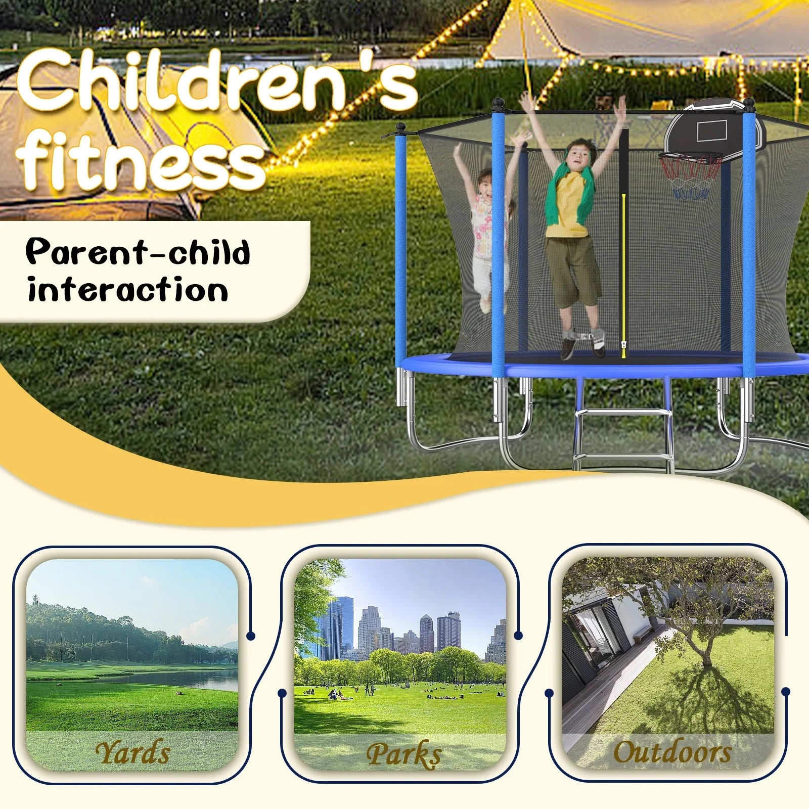 【Safety Net Enclosure】 Ensure comprehensive safety for your kids with our trampoline!Each trampoline for kids outdoor comes equipped with a high-density flexible safety net, providing UV protection and preventing accidental injuries. With a convenient ladder included, our trampoline with net makes it easy for children to access safely, making it the perfect trampoline with enclosure for worry-free fun.