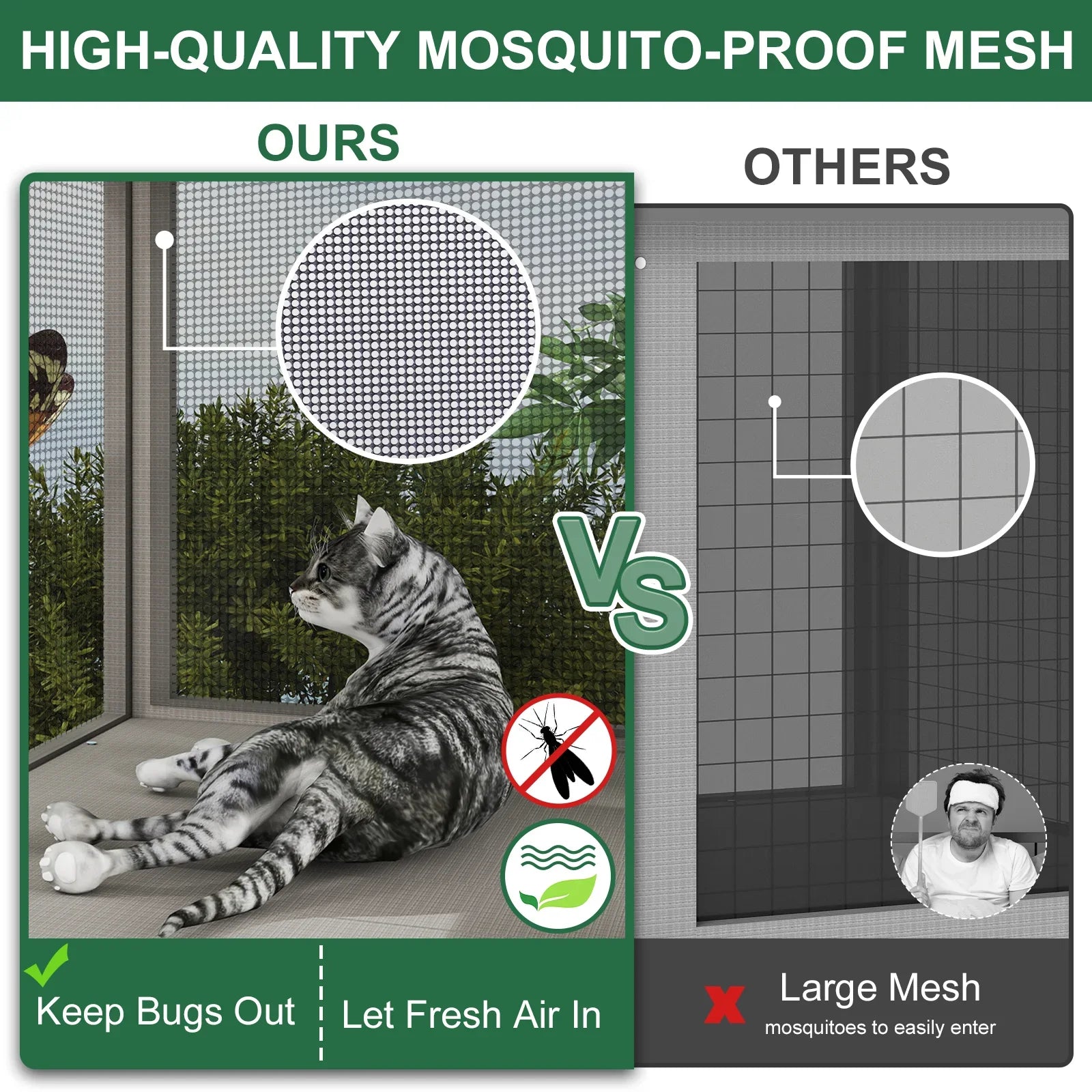 - 【Enjoy the Outdoors Safely】Indoor cats are also curious about the outside world. Our 3-sided window catio provides fresh air and a bird’s eye view for your indoor cat to safely enjoy the enrichment of the outdoors. Specially designed with finer mesh. You can have the window open all the time and no bugs flies insects getting in