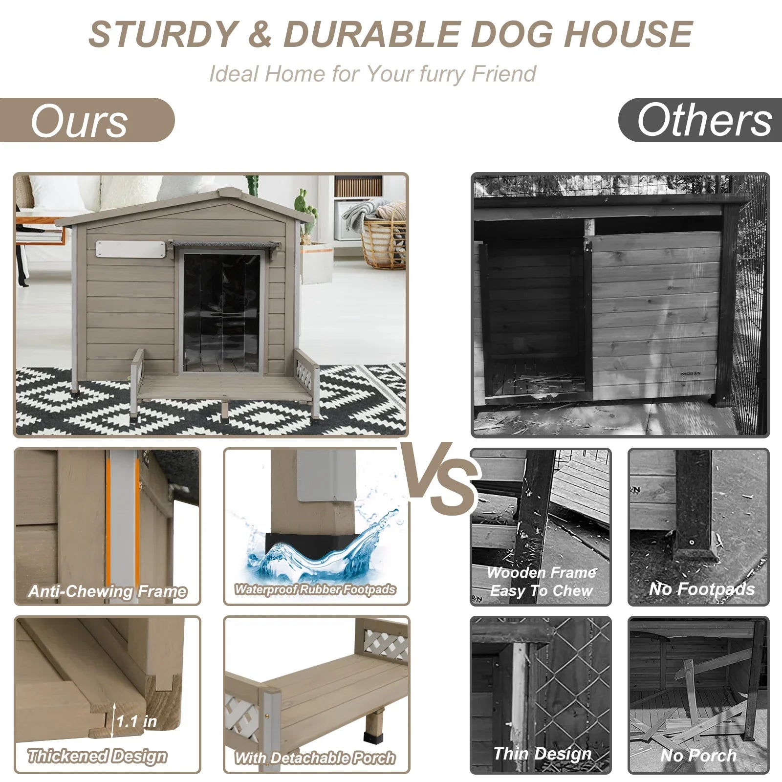 - Outdoor Dog House with Porch: This dog house features a removable porch, giving your pet extra space and security. The porch creates an ideal relaxation zone where your dog can comfortably lounge, observe their surroundings, and enjoy the fresh air.