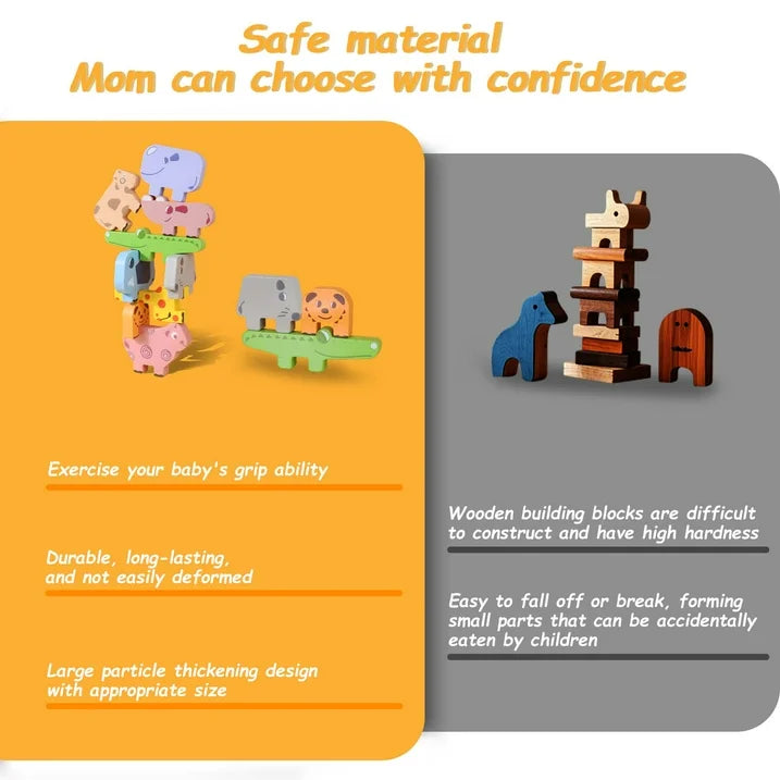 QXQ toy Montessori Wooden Blocks Set - the perfect educational toy for toddlers aged 1-4! Designed to enhance your child's development, this Montessori toy set is a safe and good-quality option that focuses on stacking and sorting skills. The set includes smooth, non-toxic wooden blocks shaped like various animals, providing challenges suitable for different skill levels. Encouraging screen-free play, this toy fosters creativity and learning in young minds. Our Montessori toy for 1-4-year-olds prioritizes safety features, educational benefits, and good-quality materials. It aims to promote sensory stimulation, brain development, color recognition, and hand-eye coordination in both boys and girls. The chunky wooden pieces are perfect for hands to grasp and manipulate, enhancing their fine motor skills. Whether for toddlers aged 1-3 or 2-4 years old, these wooden stacking blocks offer endless possibilities for imaginative play.