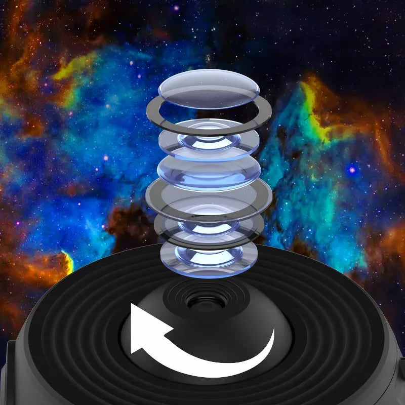 High-definition clarity: equipped with a top focal adjustment knob, this hd galaxy planetarium projector allows for precise focal length adjustments to achieve clear imaging, it supports a projection distance of up to 3 meters and covers a 135 sq. ft area, creating an immersive indoor starry light show.