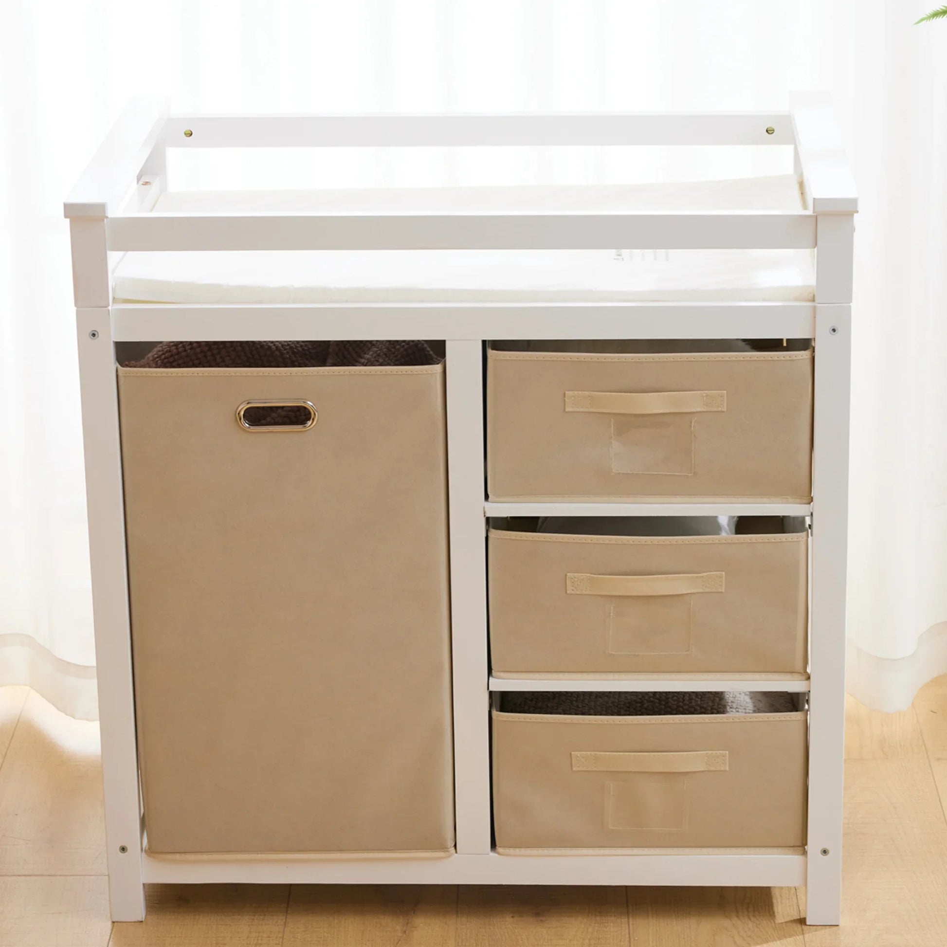 3 Fabric Drawers and A Fabric Bag: This set includes three fabric drawers and one fabric bag for storing baby essentials such as diapers, wipes, creams, toys, and more. These storage options help keep everything organized and within easy reach.