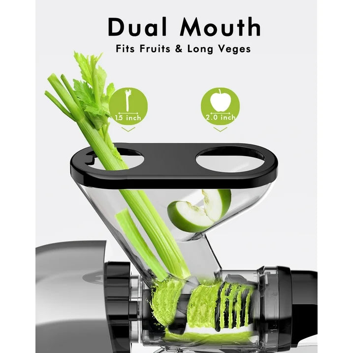 - Dual Chute System - Ensures continuous, clog-free juicing by allowing simultaneous feeding and pressing, maximizing juice yield with no interruptions.
