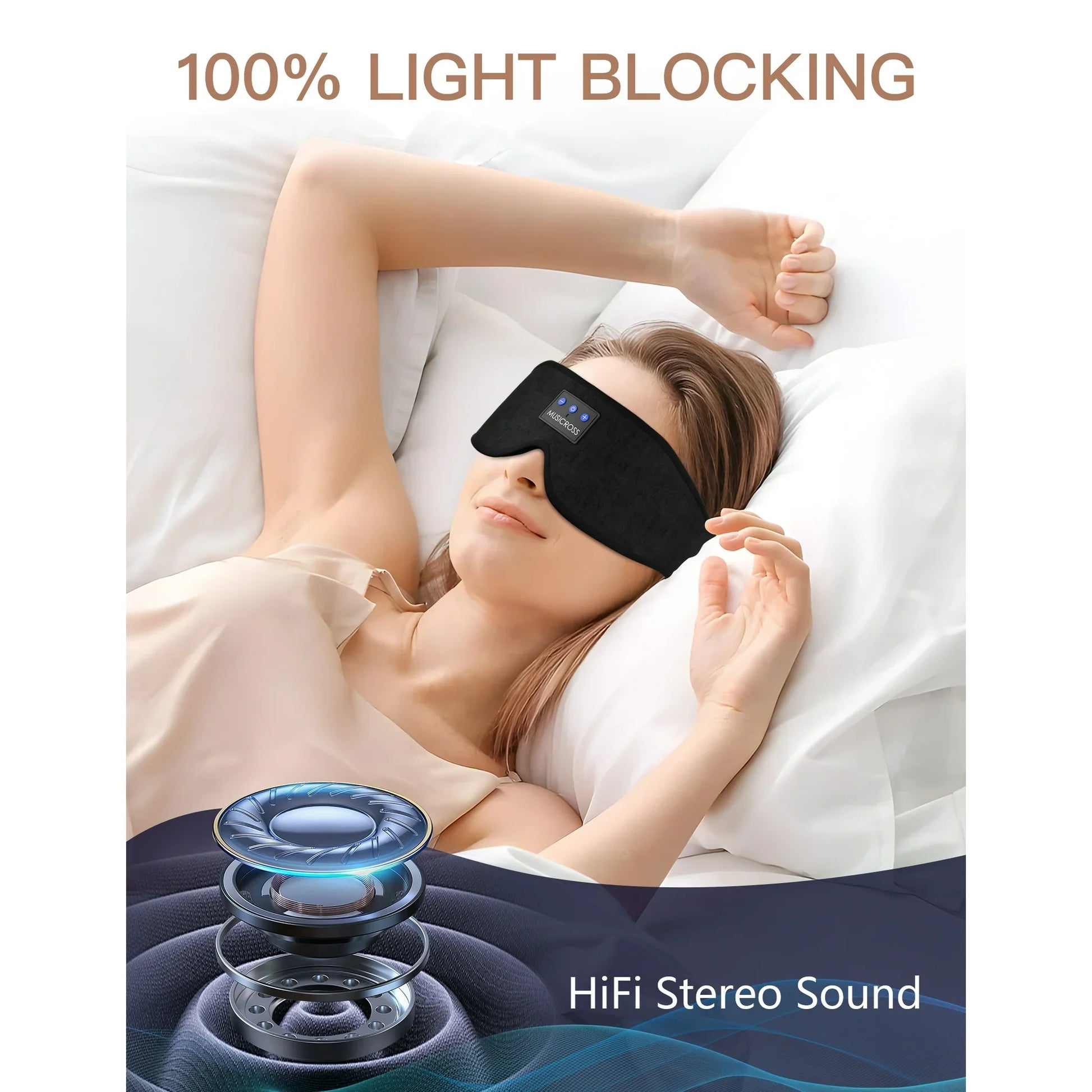 Sleep Mask with Headphones Bluetooth 5.2 Wireless, 3D Eye Mask for Sleeping Built-in HD Music, Microphone for Calls, Sleep Headphones for Side Sleepers Travel Yoga Meditation