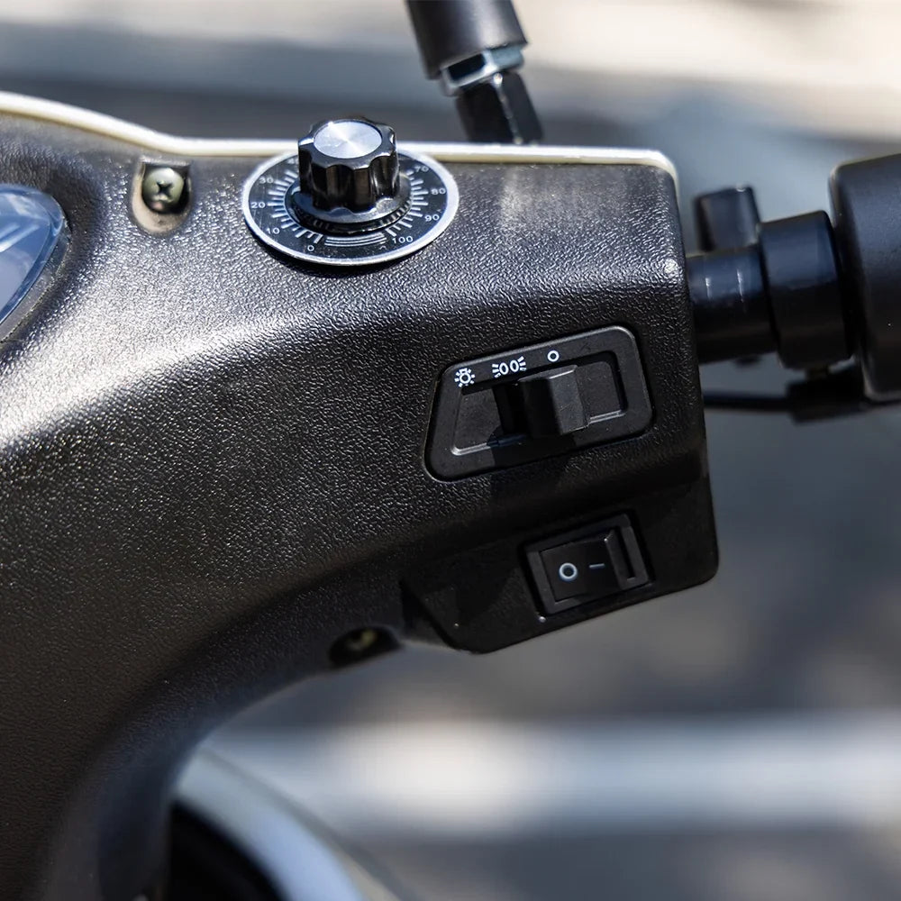 - 5. Comfortable and Convenient: This mobility scooter is designed with the user's comfort in mind. The seat is adjustable and features a comfortable backrest and armrests. You can store your items in the locking storage space under seat.