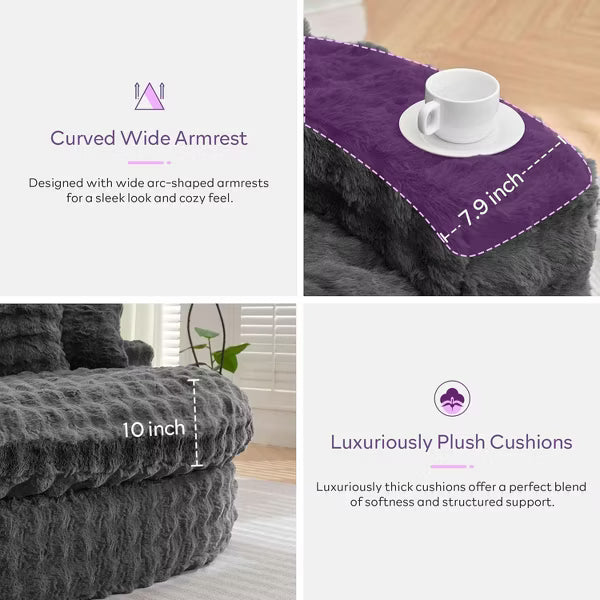Oversized Leisure Round Chair: Equipped with 10-inch wide square arms, providing loose and leisurely arm support. The 58-inch W*40-inch D seating is spacious enough for curling up, reading a book, or napping on the sofa.