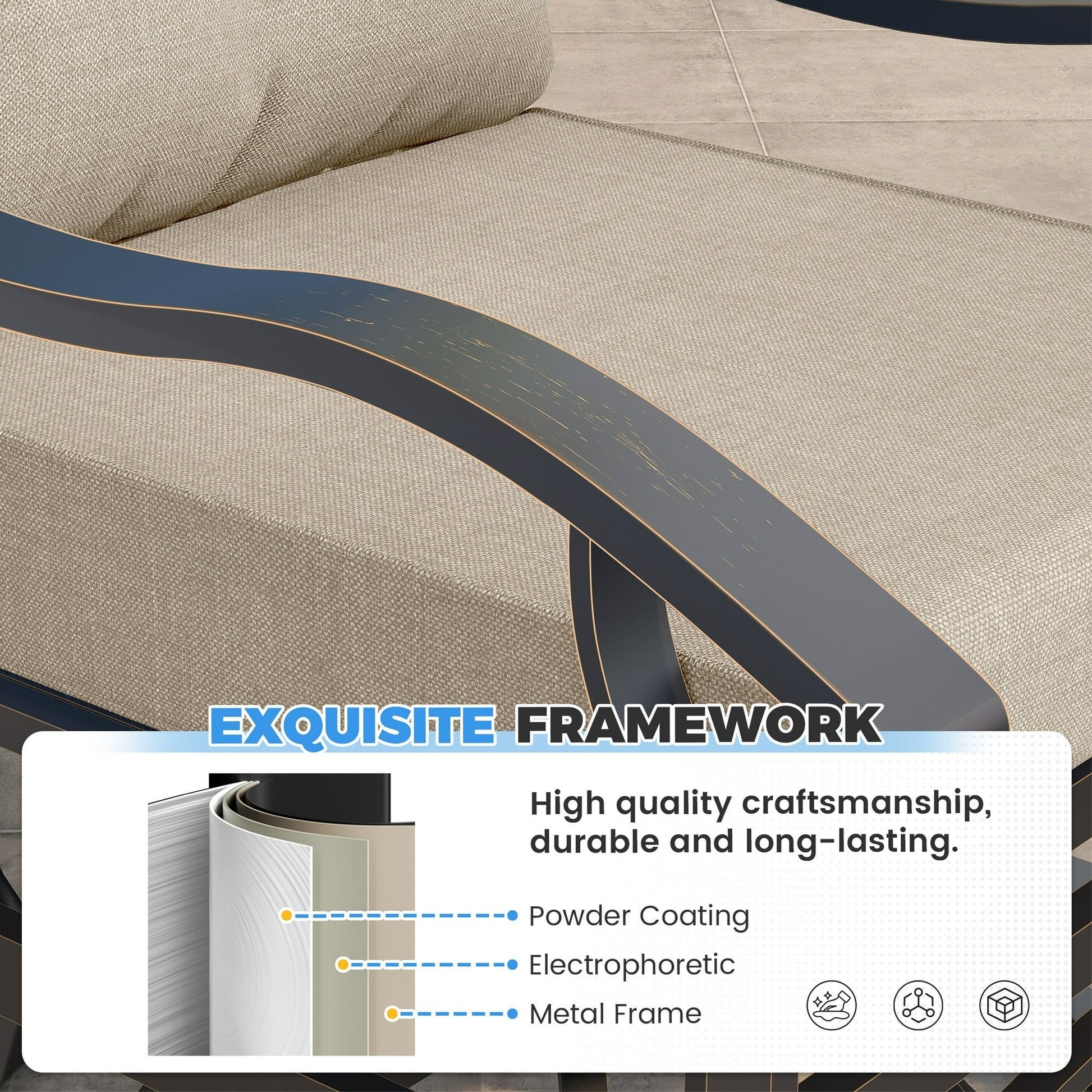 - Vintage Golden Line Design: Outdoor swivel chair is made of powder coated metal frame, sturdy and stable. Premium rustproof frame features a hand-brushed textured finish with gold lines shimmer in the sunlight, more suitable for your modern outdoor space.