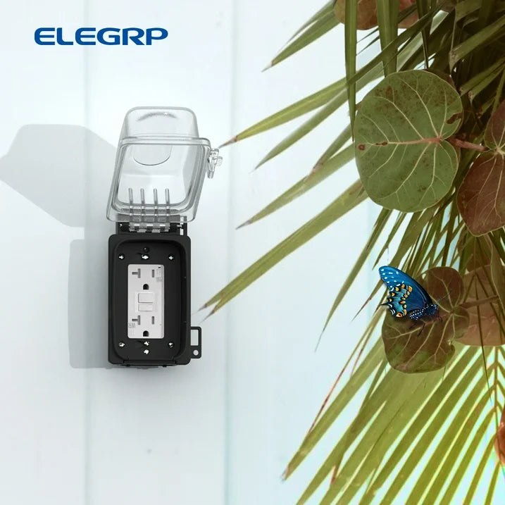 The weatherproof device kits provides protection for outdoor device applications. The kit includes single gang metallic weatherproof box, plastic in-use cover, and 15A WR/TR self-test GFCI outlet. Weatherproof enclosure protects outlets from outdoor elements such as rain, mud, dirt, and snow and provides protection against pets and other animals. 20A Tamper Tesistant and Weather Resistant GFCI Outlet provides protection from dangerous electrical shocks that might occur from faulty appliances or tools,wet or damp locations.