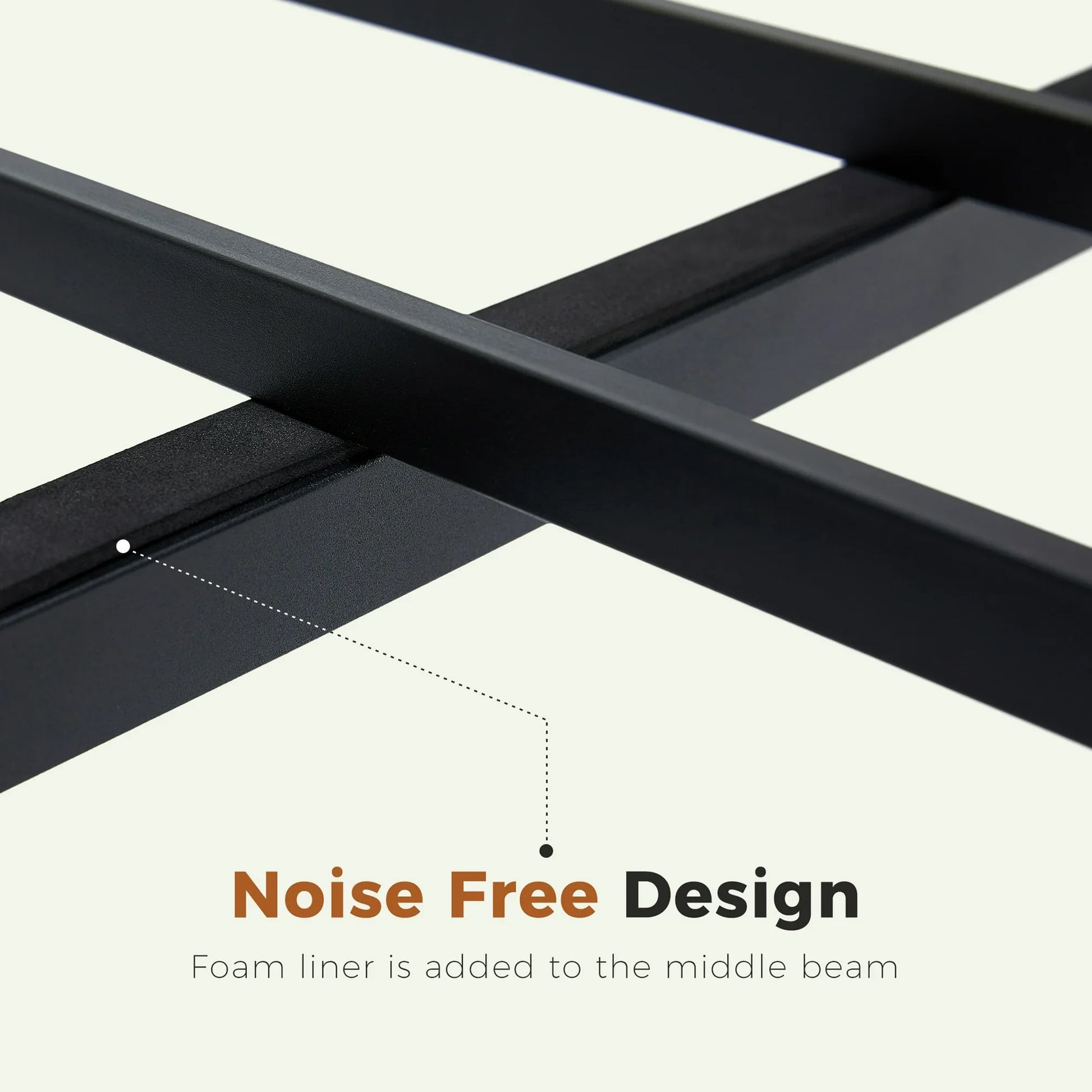 Superior Weight- Bearing Capacity: Constructed from high- strength steel, this bed frame supports up to 800 pounds, ensuring secure and stable sleep without the need for a box spring. Its reinforced leg design effectively prevents wobbling, giving you peace of mind during use.